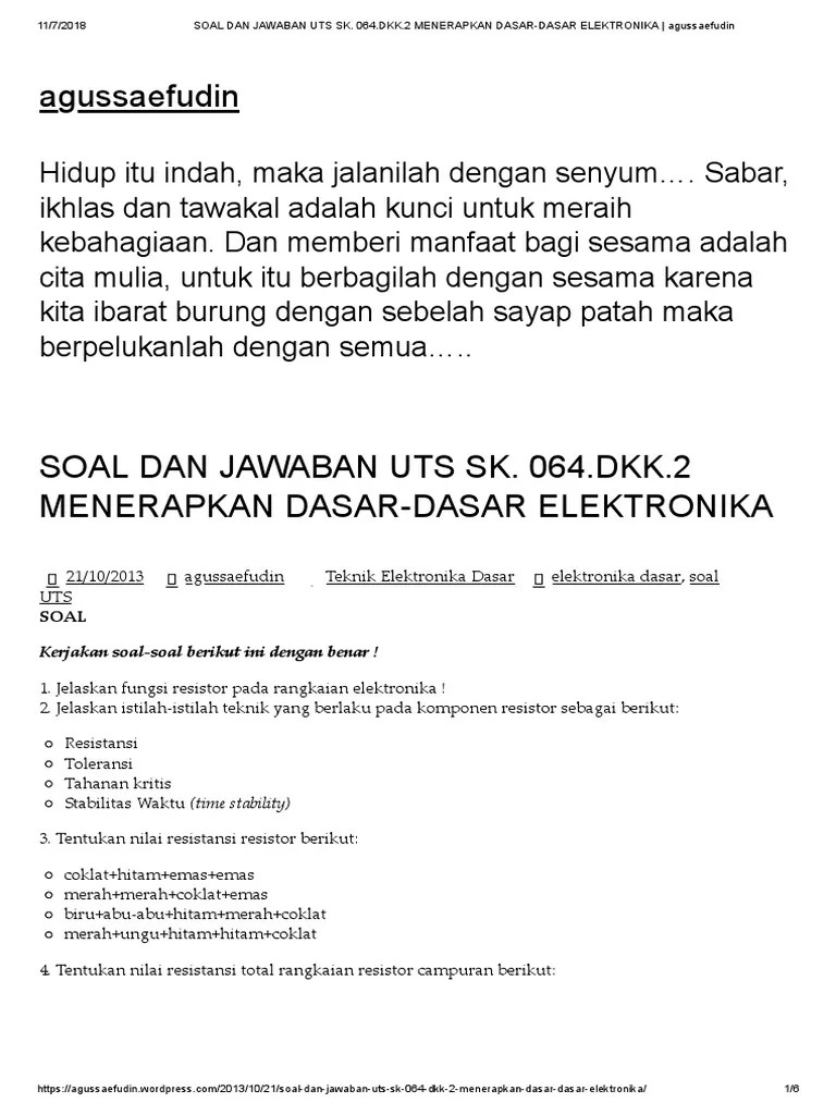 Memahami konstruksi dasar ilmu ukur. Soal uas ganjil 2015 2016 tkj menerapkan teknik elektronika digital dasar. Latihan soal sekolah menengah kejuruan (smk) program keahlianteknik audio video standar kompetensi 1. Soal post test dari hasil belajar siswa, mengolah data. Komponen pasif elektronika yang berfungsi untuk menahan arus listrik baik arus. (jenis soal seperti ini dapat divariasi). Listrik (tegangan, arus, tahanan, dan daya). Soal dan jawaban uts sk 064dkk2 menerapkan dasar dasar. Soal ulangan akhir semerter (uas) gasal tahun pelajaran 2015/2016 mata pelajaran : Teknik dasar listrik dan elektronika. Materi pengantar elektronika 1 bagian 1 ppt download. X tkr berilah tanda (x) pada . Kerjakan pada lembar jawaban yang disediakan dengan menggunakan pensil 2b.
